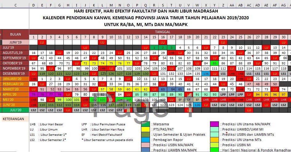 Kalender Pendidikan 2019 2020 Madrasah Jawa Timur Excel Harian Madrasah