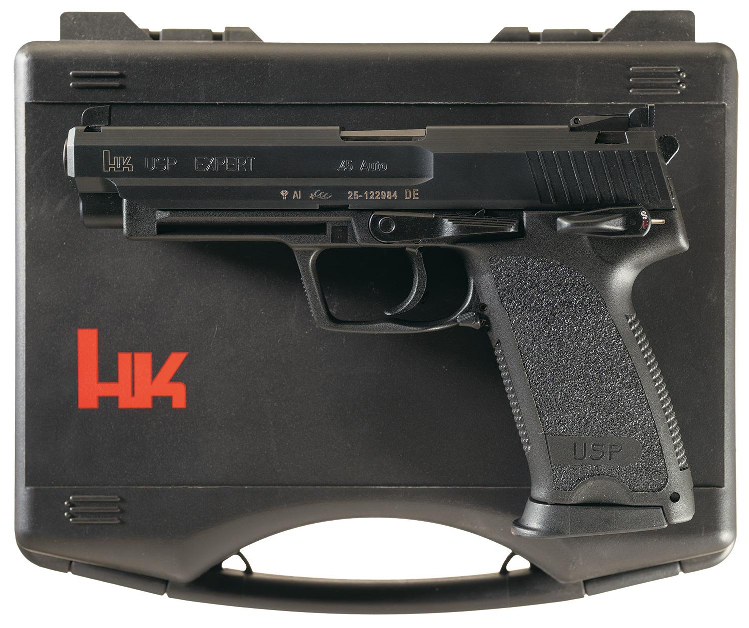 • Heckler & Kock USP Expert 45 .45 ACP, $1356. Our Pick. We preferred operating this gun as a single-action firearm rather than as a double-action pistol. But we liked the decocker as an extra safety. The USP Expert 45 proved to be rugged, reliable and very accurate with many ammunition brands. • Kimber Gold Match Ten II .45 ACP, $1072. Don't Buy. HK's USP Expert, which was introduced in 1998, delivers superior accuracy by combining the best features of the USP Match, USP45 Tactical, and the Mark 23 in chamberings that include 9x19mm, .40 S&W and .45 ACP. By Al Paulson. Placement of controls will be familiar to anyone trained with Browning-type pistols.